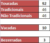 Nesta estatistica, da minha inteira responsabilidade, foram utilizados dados oficiais dos serviços camarários das Câmaras Municipais de Angra do Heroísmo e Praia da Vitória, fazendo referência a touradas (T), touradas com dois e quatro ganaderos (1/2 T e 1/4 T), procedendo da mesma fora com as Vacadas (V) e Bezerradas (B).