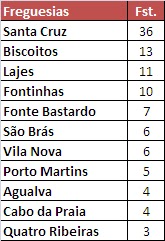 O Concelho de Angra registou 153 festejos, sendo a freguesia de São Mateus a que mais festejos realizou neste Concelho, sendo Humberto Filipe o ganadero que mais lidou; o Concelho da Praia da Vitória registou 105 festejos, sendo a freguesia de Santa Cruz a que mais festejos realizou em seu território e sendo os Herdeiros de Ezequiel Rodrigues aqueles que mais lidaram neste concelho do Ramo Grande.